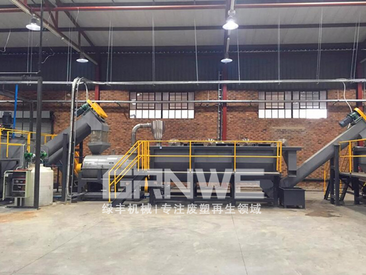 此套生产线主要用于处理日常生活中废弃的矿泉水瓶、饮料瓶、可乐瓶等PET塑料瓶的再生回收利用。将回收的PET瓶经过 整瓶预处理(针对碎前预处理环节,根据我们现有丰富经验绿丰机械脱标和蒸气分离脱标两种方案供客户选择,以应对瓶砖型、整瓶型、套标型、粘标型等多种货源情况)、加水破碎、分离瓶盖、冷洗、蒸气热洗、漂洗、脱水、烘干、二次粉碎、杂质剔除精选、打包封装。将其加工成PET再生瓶片。根据客户对成品的不同用途及不同地区的不同原材料情况,结合我们多年PET回收处理经验为客户量身定制经济实用的工艺方案,含生产线工艺流程规划、工厂布局规划、生产线污水循环处理方案规划等。PET聚酯瓶热洗片回收清洗线 长纤级PET破碎清洗回收生产线